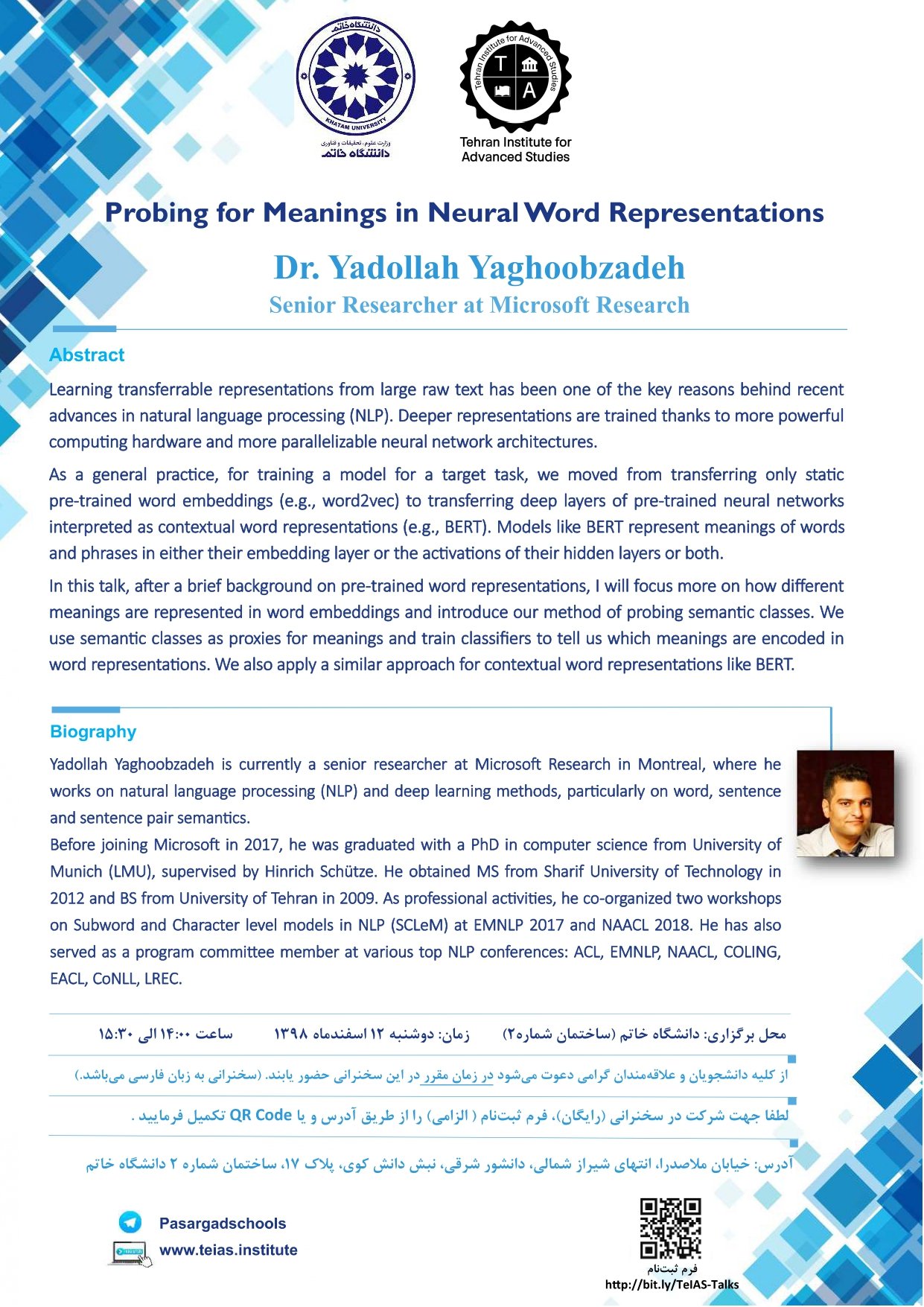 Yadollah Yaghoobzadeh is currently a senior researcher at Microsoft Research in Montreal, where he works on natural language processing (NLP) and deep learning methods, particularly on word, sentence and sentence pair semantics.