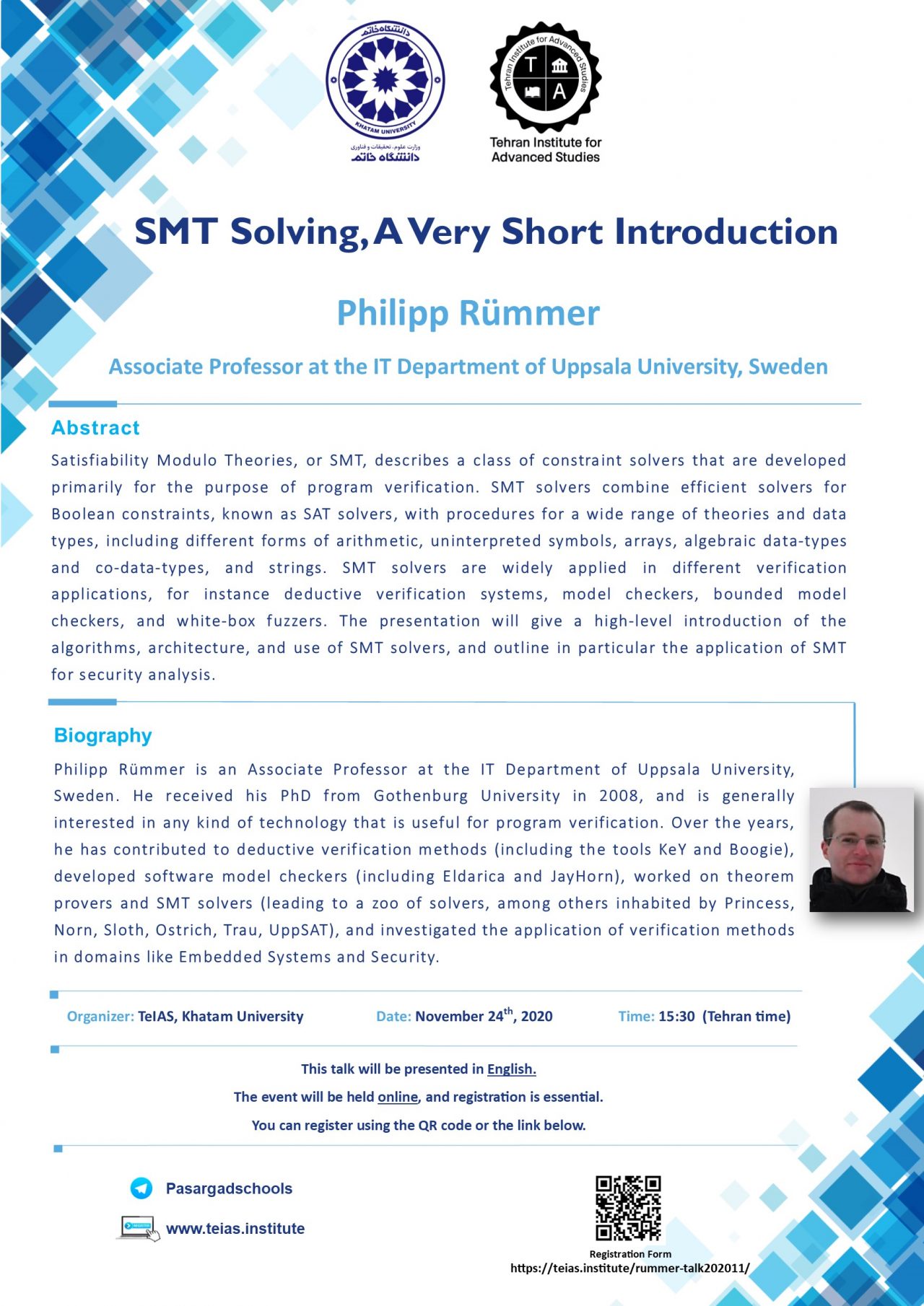 Philipp Rümmer is an Associate Professor at the IT Department of Uppsala University, Sweden. He received his PhD from Gothenburg University in 2008, and is generally interested in any kind of technology that is useful for program verification. Over the years, he has contributed to deductive verification methods (including the tools KeY and Boogie), developed software model checkers (including Eldarica and JayHorn), worked on theorem provers and SMT solvers (leading to a zoo of solvers, among others inhabited by Princess, Norn, Sloth, Ostrich, Trau, UppSAT), and investigated the application of verification methods in domains like Embedded Systems and Security.